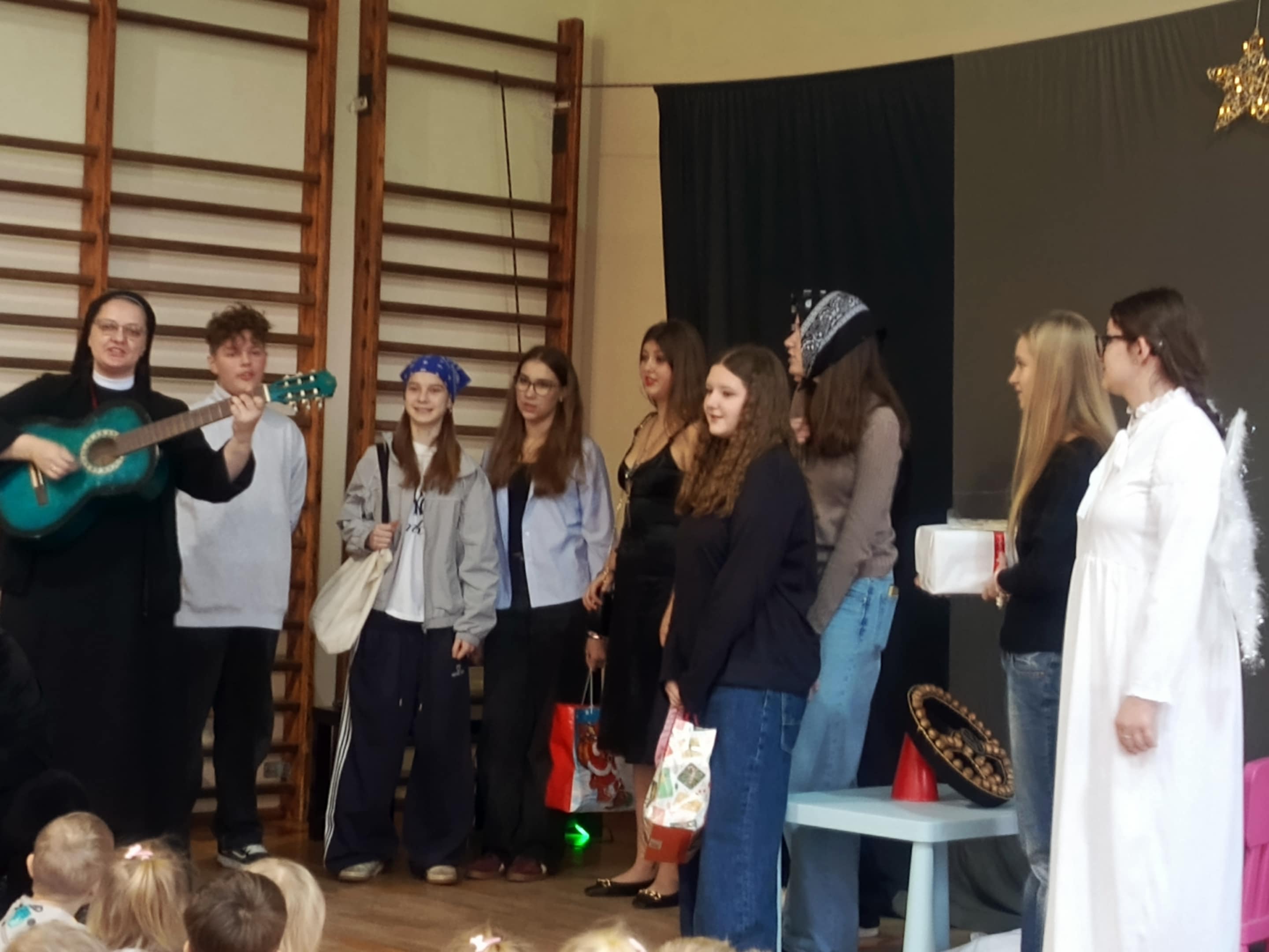 Młodzi aktorzy z ogromnym zaangażowaniem i radością wcielili się w swoje role, wprowadzając wszystkich w świąteczny nastrój.