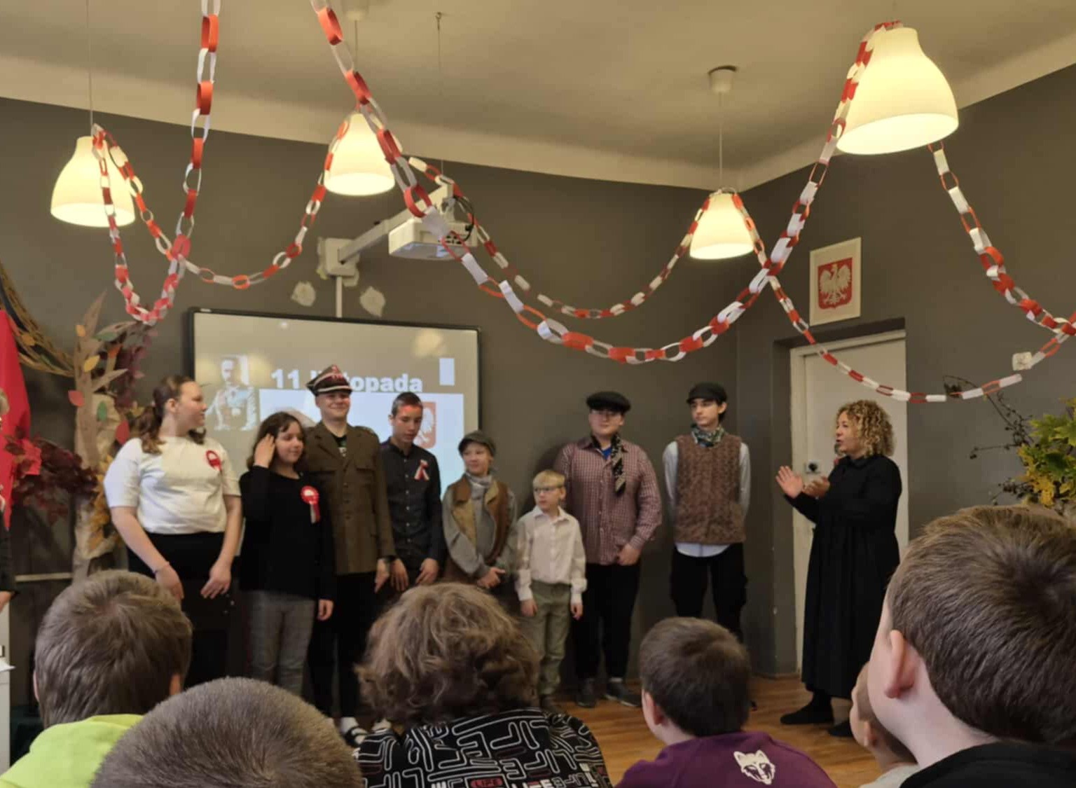 Został odśpiewany hymn, były także recytacje wierszy i prezentacja multimedialna o drodze Polski do niepodległości.